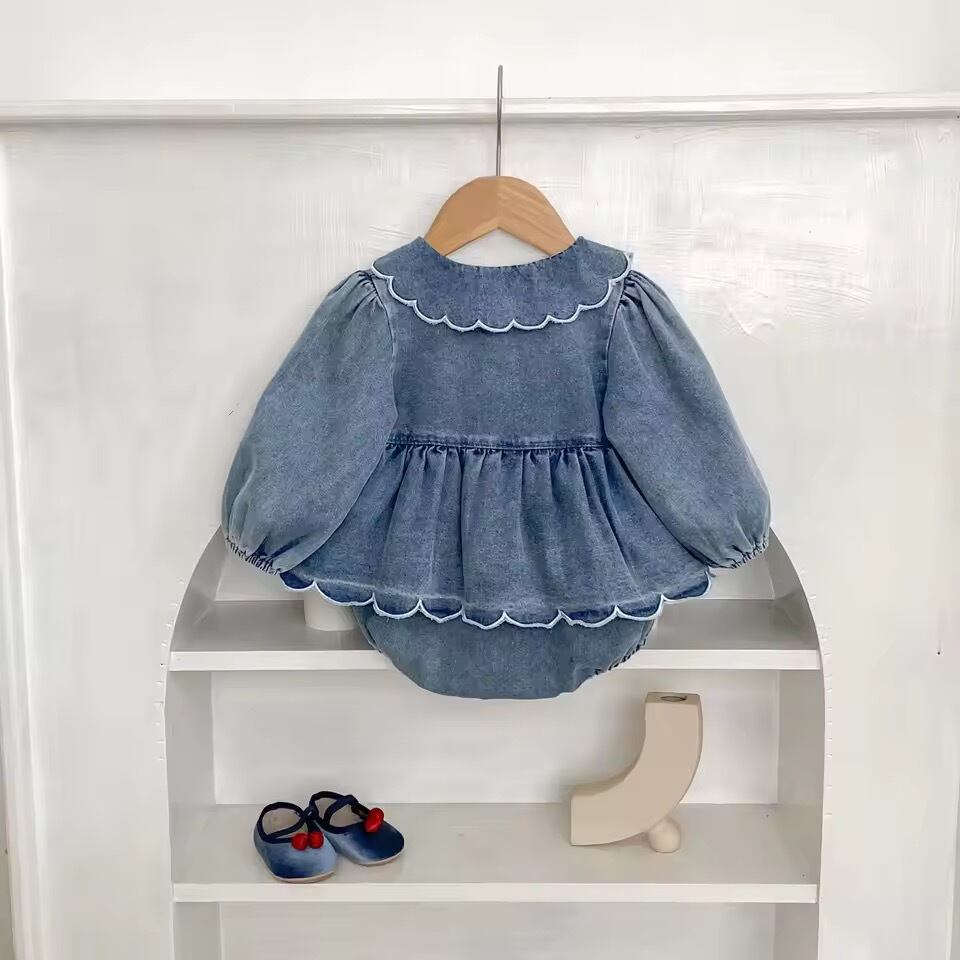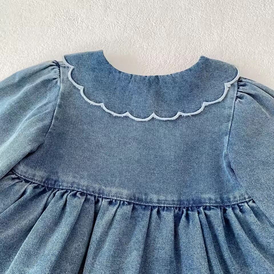 ベビードレス デニムワンピース キッズ 春秋 女の子 幼児 子供ドレス 長袖 可愛い キッズ ワンピース 発表会 誕生日 お出かけ着 普段着 赤ちゃんドレス 新生児 キッズドレス ベビー おしゃれワンピース 出産祝い