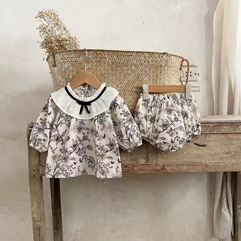 アンティーク柄ベビーセットアップ女の子 赤ちゃん お宮参り 退院 出産祝い ベビー 新生児 プレゼント ギフト 晴れ着 写真撮影 退院着 お食い初め 御祝 お祝い 韓国子供服 服 春 夏 秋 冬 ナチュラル 100cm70cm 80cm 90cm