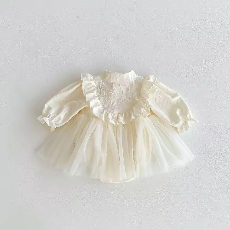 ベビー ロンパースドレス 長袖 レース セレモニー 春 秋 可愛い 写真撮影 出産祝い 70 80 90 ベビー服 カバーオール 赤ちゃん 女の子 オールインワン 韓国ファッション 新生児 おしゃれ キッズ プレゼント お出かけ 部屋着 ドレス ワンピース