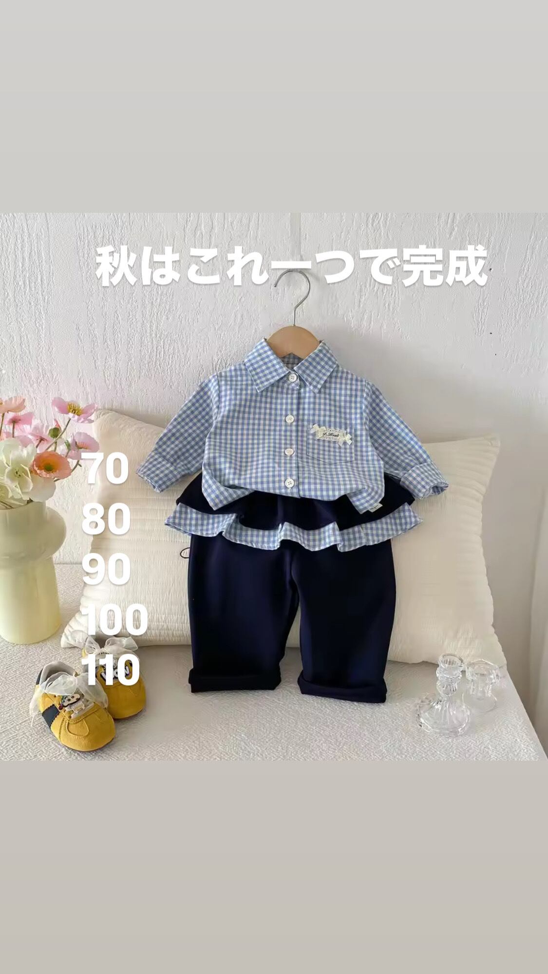 セットアップ 上下セット ボトムス トップス ボタン パンツ 2点セットワイシャツ 長袖 キッズ プルオーバー チェック柄 襟 かわいい 長袖 秋 キッズ 女の子 ジュニア こども服 おしゃれ 春 秋 冬 人気 韓国子供服 70 80 90 100 110