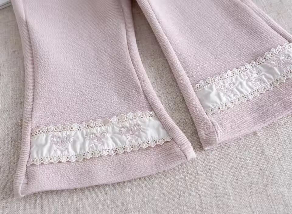 スウェット 女の子 キッズ ナチュラル スイート ガーリー リボン フリル かわいい 長袖 セットアッププルオーバー 柔らかな肌触り 春秋 普段使い 着回し ピンク
