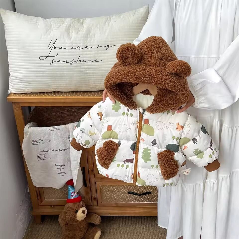 くま柄 キッズ ジャンパー 暖かい 厚手 ダウンコート フード付き 可愛い アウター コート ダウンジャケット 子供服 男の子 女の子 防寒