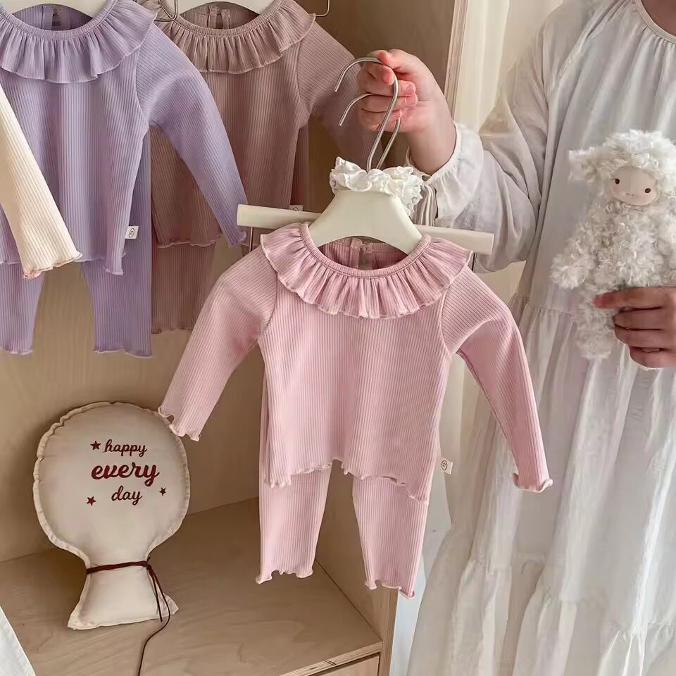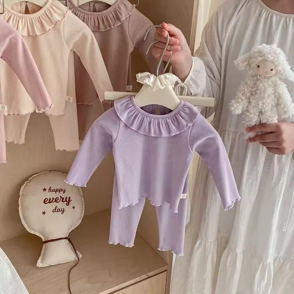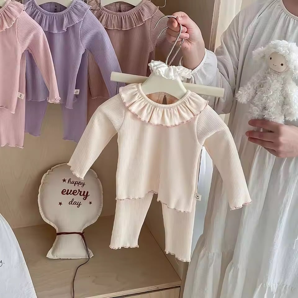 Tシャツ キッズ 子供服 長袖 セットアップ トップス ボトムス ラウンドネック 普段着 部屋着 春秋 ベージュ系 ブラウン系