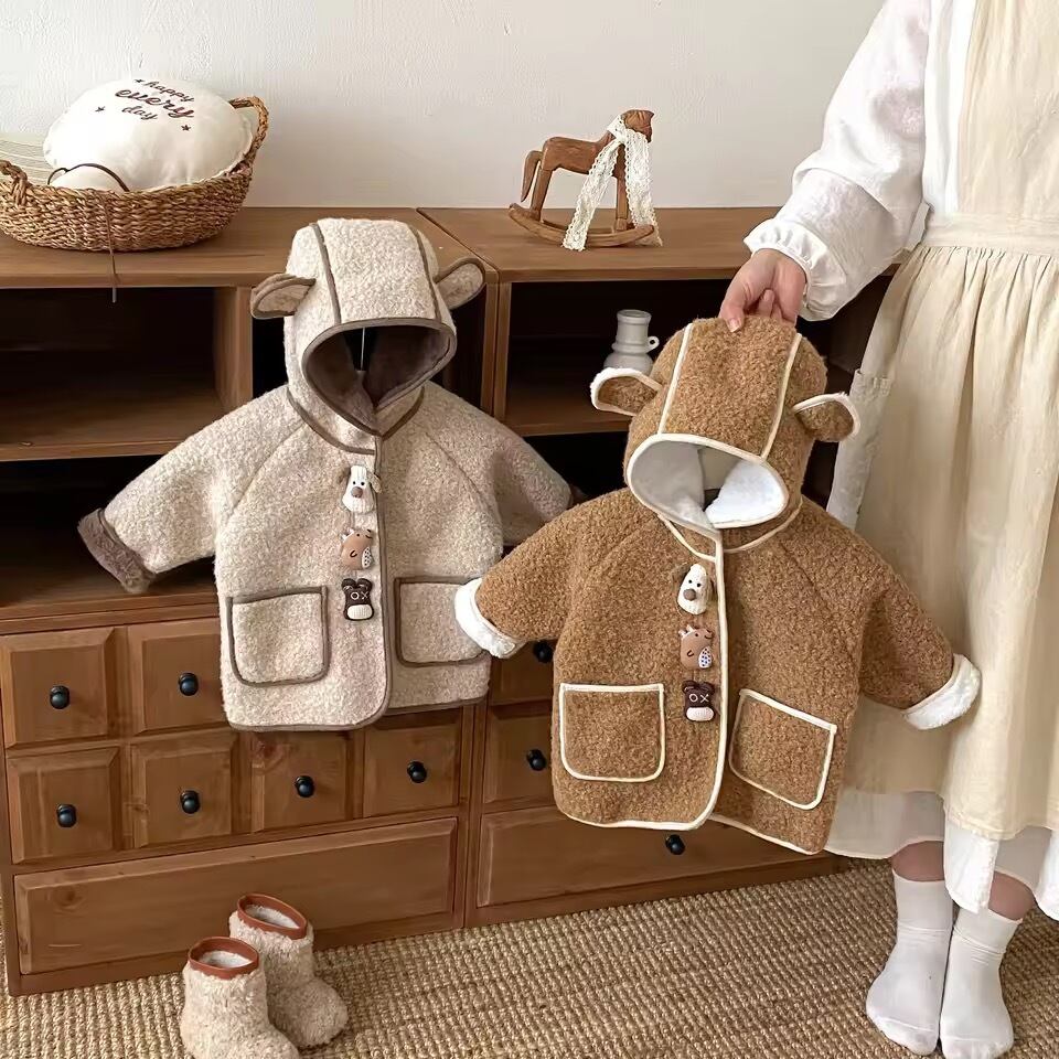 ベビー服 ジャケット ベビー キッズ 男の子 女の子 もこもこ アウター フード付き ポケット付き 長袖 秋 冬 秋服 冬服 子ども服 子供服 子ども 子供 裏起毛 暖かい 防寒 おしゃれ かわいい 韓国 韓国ベビー服 韓国子ども服 70 80 90 100 110 120