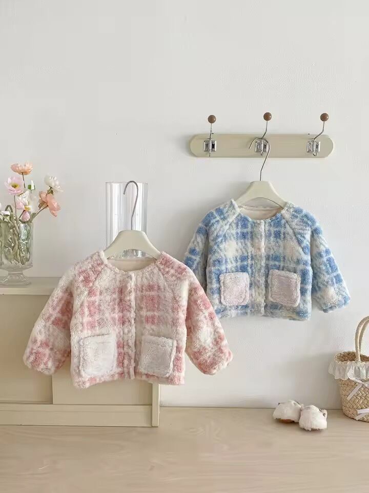 コート キッズ 女の子 ベビー 厚手 裏ボア チェック柄 冬 防寒 暖かい 長袖 ショート丈 韓国風 1歳 2歳 3歳 70 80cm 90cm 100cm 110