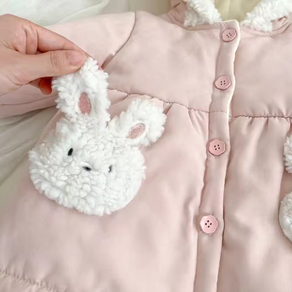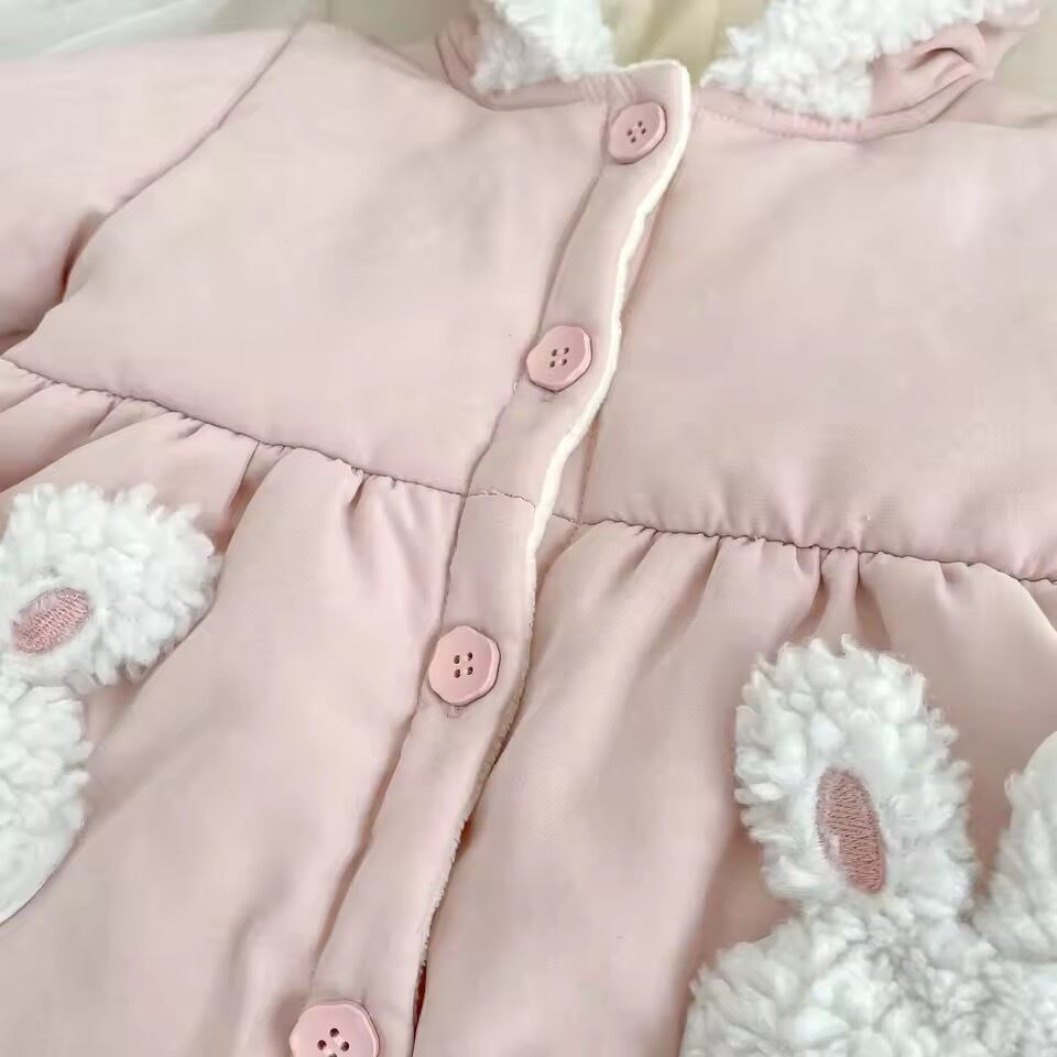 女の子 うさぎジャケット 耳付き 可愛い 防寒 ダウンコート 通園 通学 キッズ 子供服 ガールズ アウター アウタドア カジュアル ファッション 秋冬