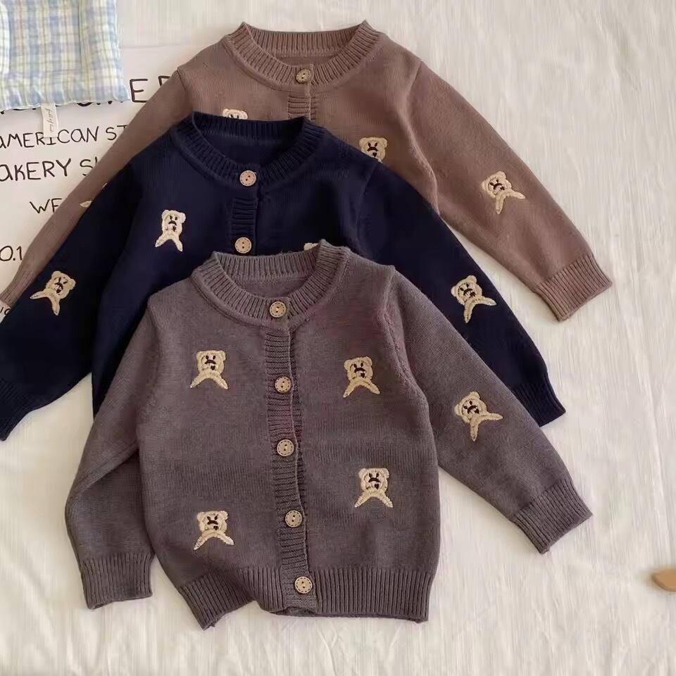 子供服 カーディガン ニット 薄手 男の子 長袖カーデ 春秋 熊図案 前開き キッズ 防寒保温 オシャレ 女の子カーディガン アウターウエア 可愛い カジュアル
