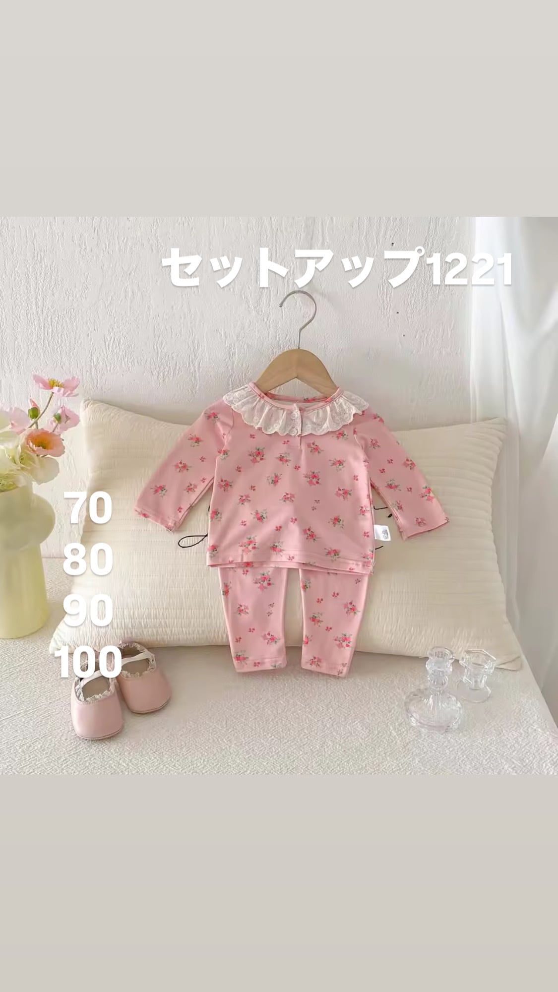 70cm/80cm/90cm/100cm セットアップ ベビートップス ブラウス キッズブラウス 襟つき フレア 春秋 合わせやすい 長袖可愛い 女の子 子供服 キッズ服 ピンク