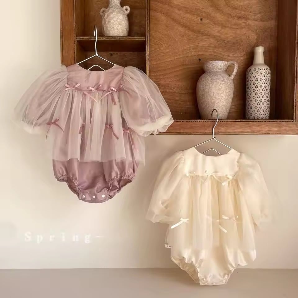 新生児 赤ちゃん服 韓国子供服 ベビー ワンピース 可愛い チュールワンピース ベビードレス 女の子 ドレス ロンパース ホワイト パープル 子供服
