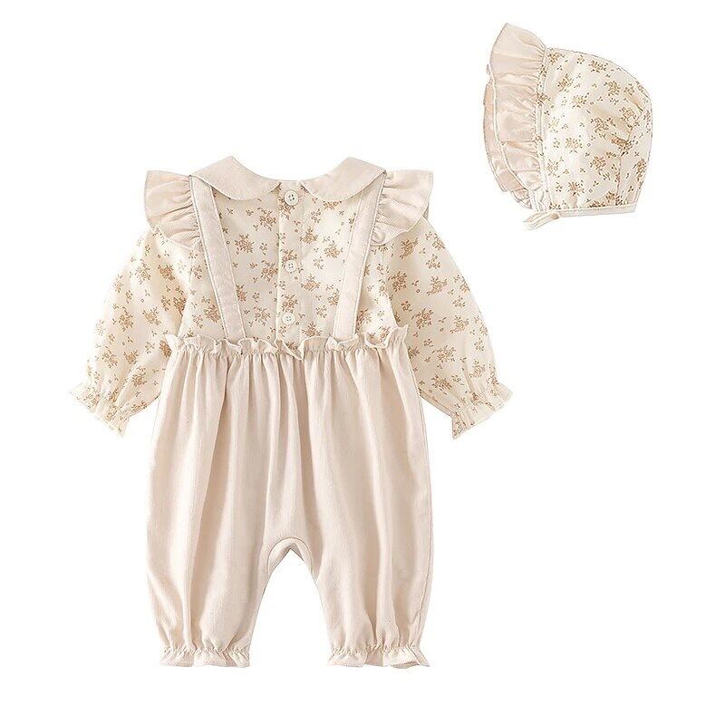 トレンドのくすみカラーでありながら、大正ロマン風な上品なデザインのロンパースです!