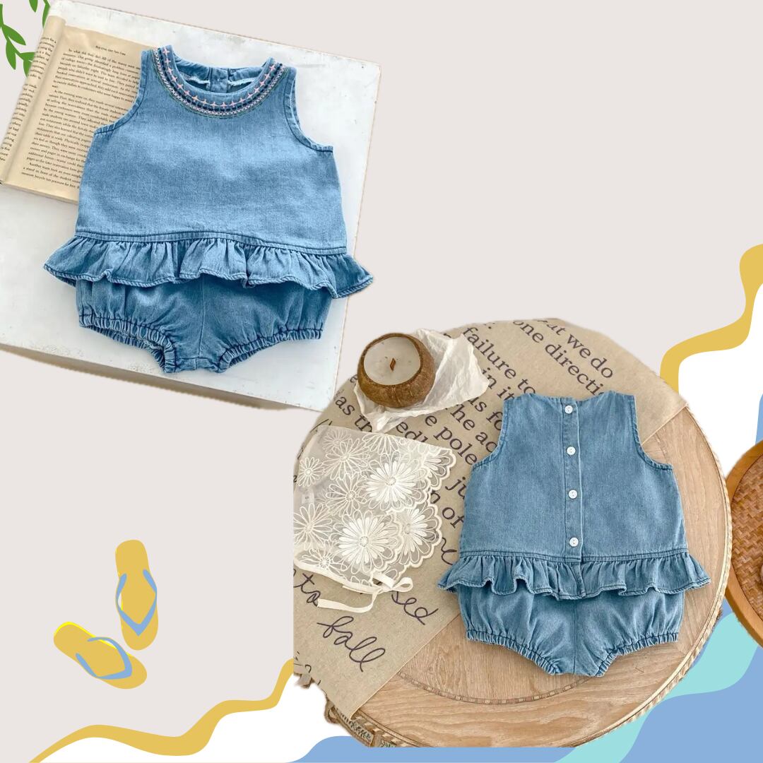 デニムセット デニム服 ノースリーブ ベスト 刺繍 トップ パンティー 夏服 0〜3歳 ベビー ベビー服 赤ちゃん 春夏 ブルマ フリル 女の子 パンツ かぼちゃパンツ デニム オムツカバー ショートパンツ キッズ 子供服 おしゃれ シンプル かわいい ズボン パンツ 出産祝い 60 70 80 90 100 おしゃれ 可愛い コーデ ナチュラル トレンド 人気 上下セット ショーツパンツ 保育園 幼稚園 小学校 通学着 姉妹お揃い 姉妹リンク 韓国子供服 韓国子ども服 海外ベビー服 韓国ベビー服