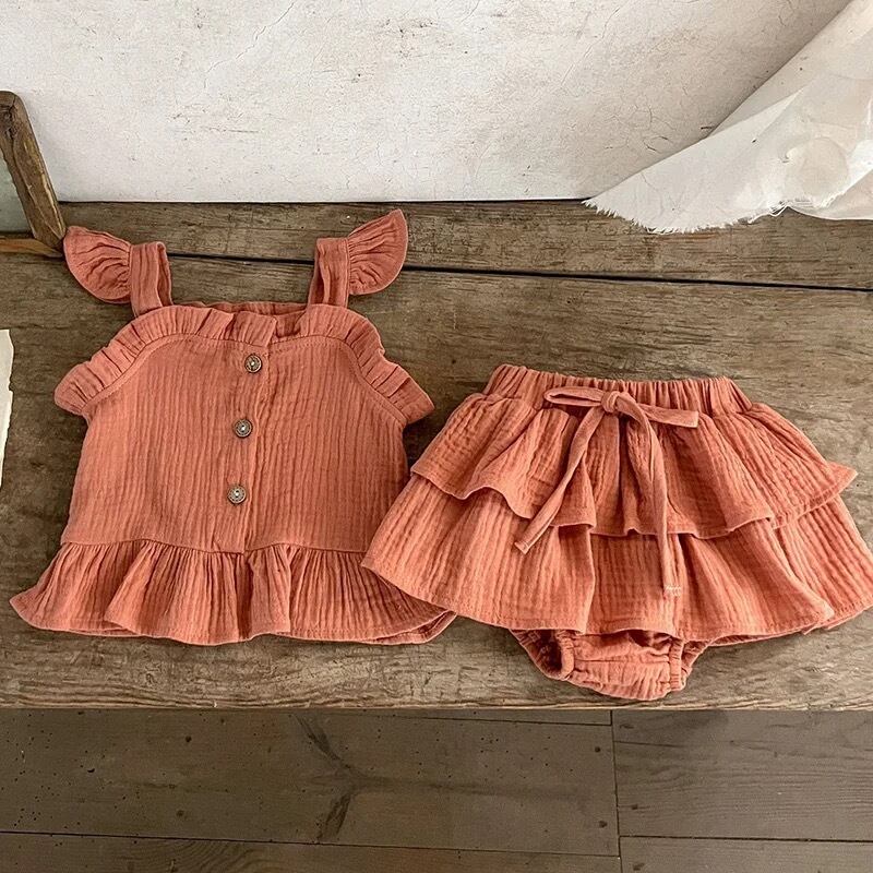 コットンノースリーブ ノースリーブ ブラウン ベビー服 女の子 上下セット キッズ 子供服 キャミソール パンツ 新生児 おしゃれ 可愛い ルームウェア セットアップ セパレート 韓国こども服 春 夏 赤ちゃん お出かけ 誕生日 出産お祝い プレゼント 入園 保育園 70 80 90 100 おしゃれ コーデ ファッション セレクトショップ ナチュラル
