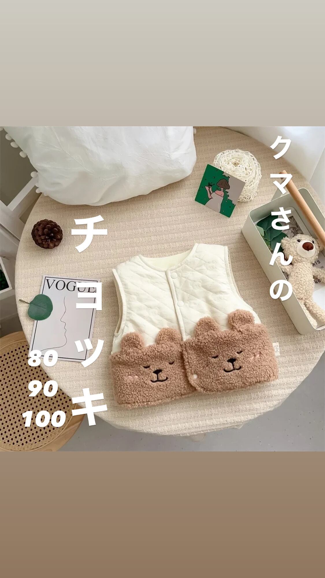 ベビー服 前開きベスト クマ柄 ノースリーブベビーコート ベスト 女の子 男の子 ジャケット 子ども服 こども服 秋服 春服 前開きボタン 可愛い 日常カジュアル ベビー用品 子供用 赤ちゃん 幼児 通園 通学 7080 90 100