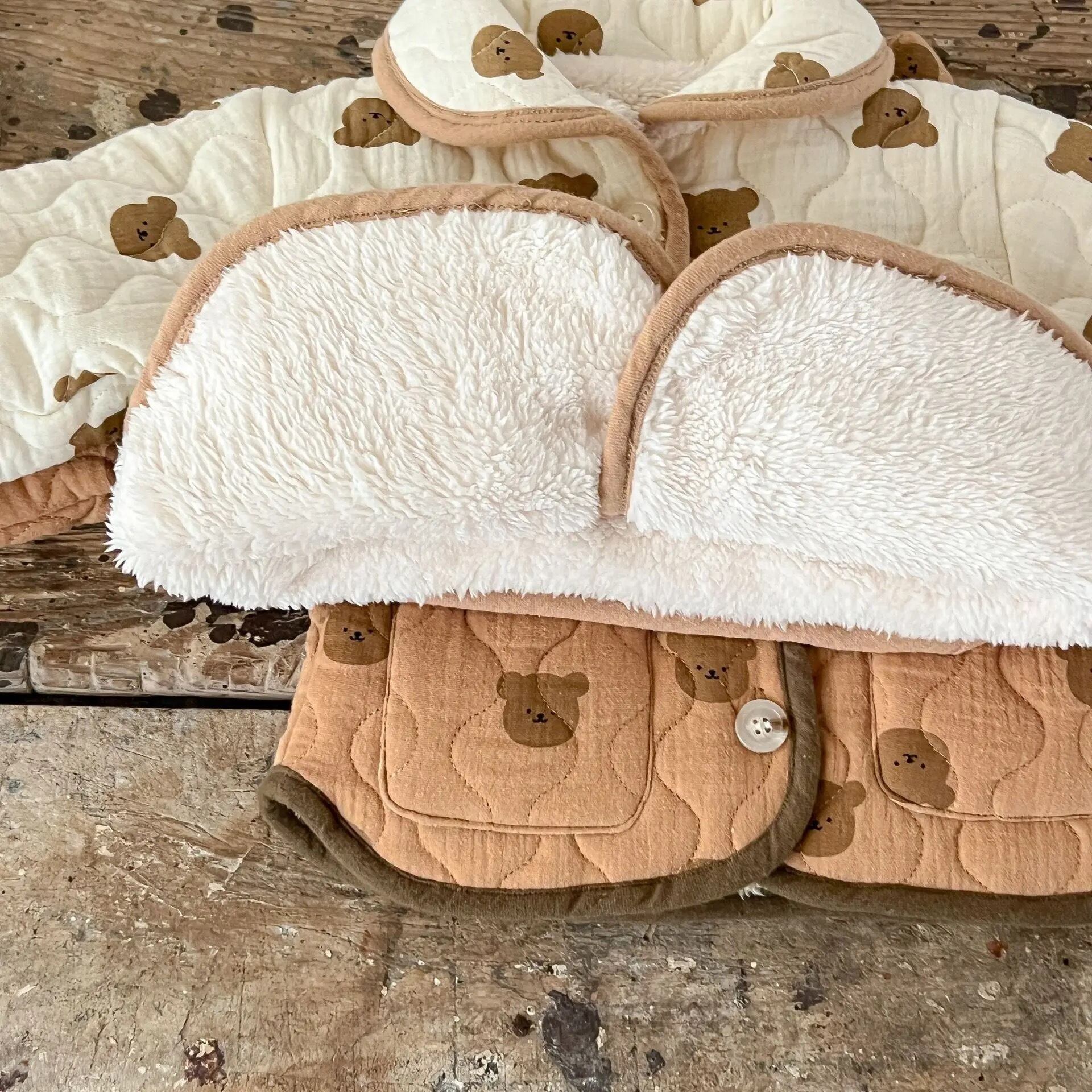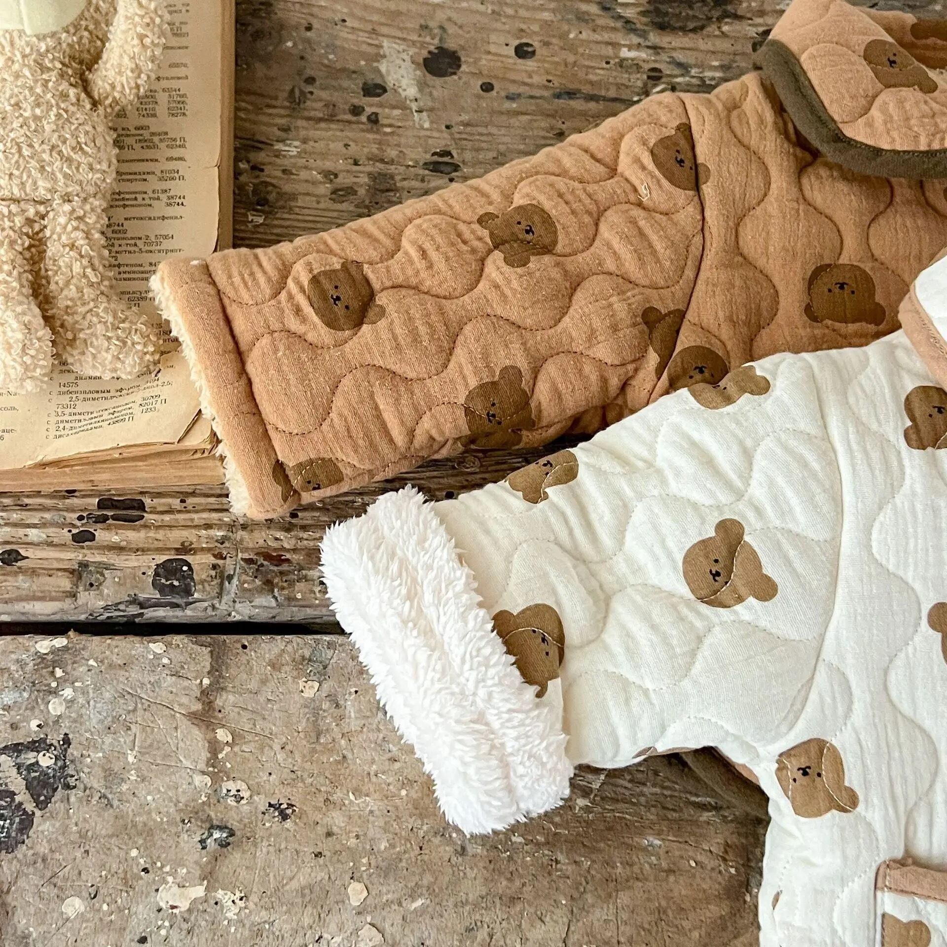 クマ 総柄 キルティングジャケット 裏ボア 防寒 冬 アウター 女の子 子供服 ベビー 赤ちゃん