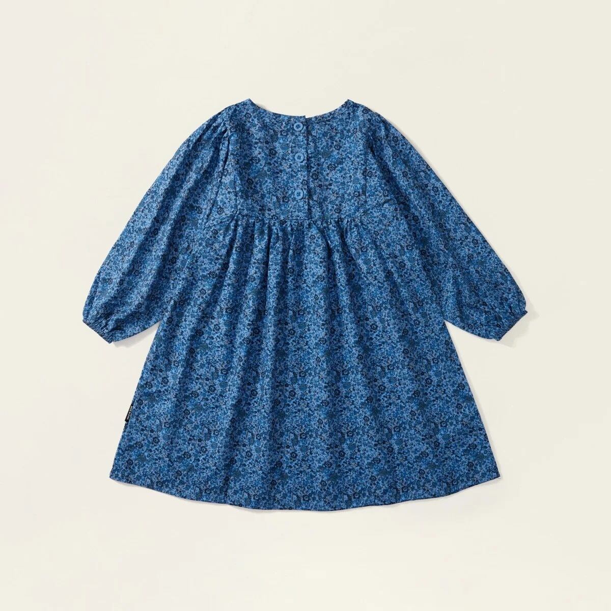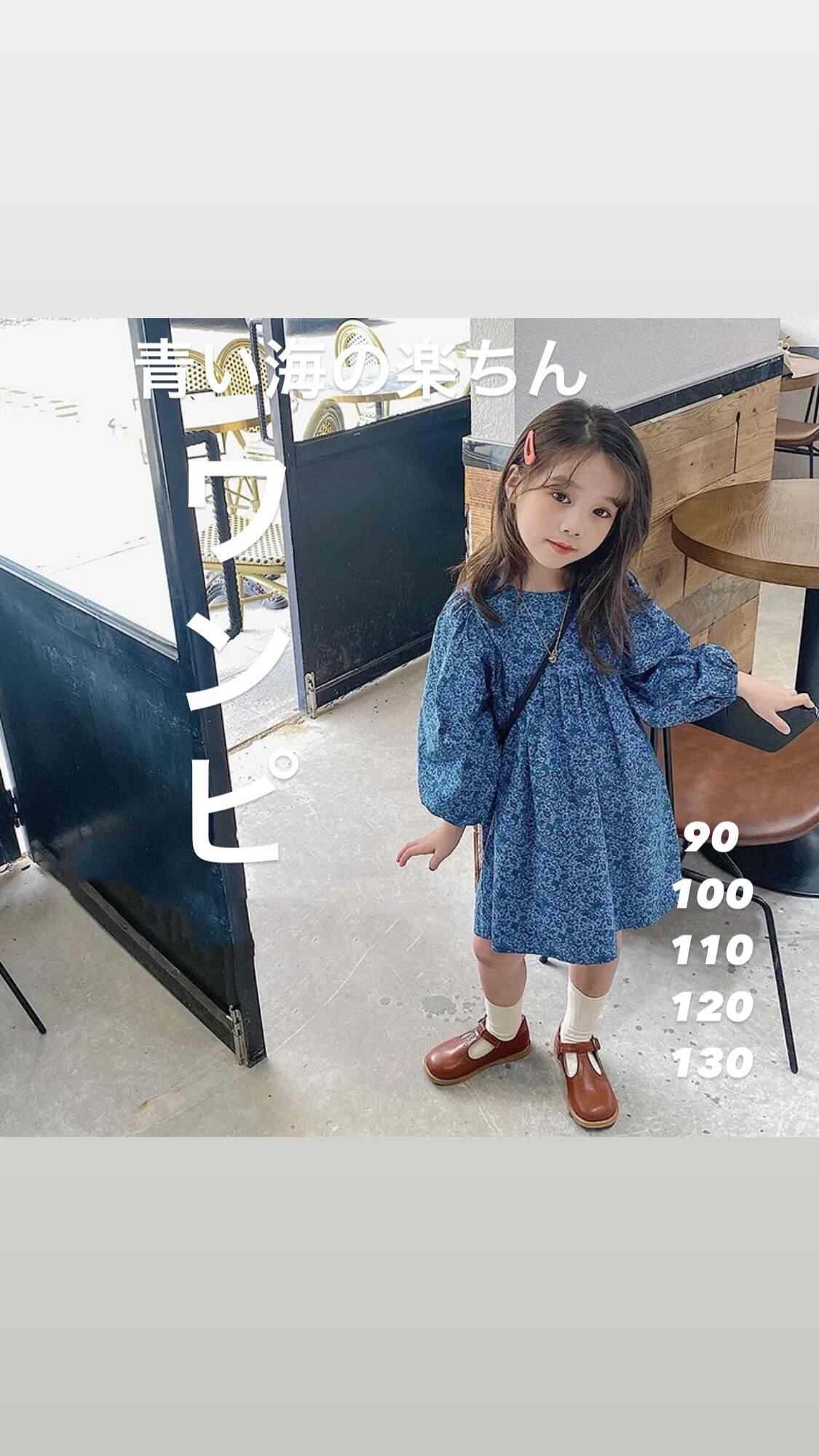 ワンピース ベビードレス 長袖 モザイク柄 ブルーブラック 海外子ども服 輸入アパレル むすめ服