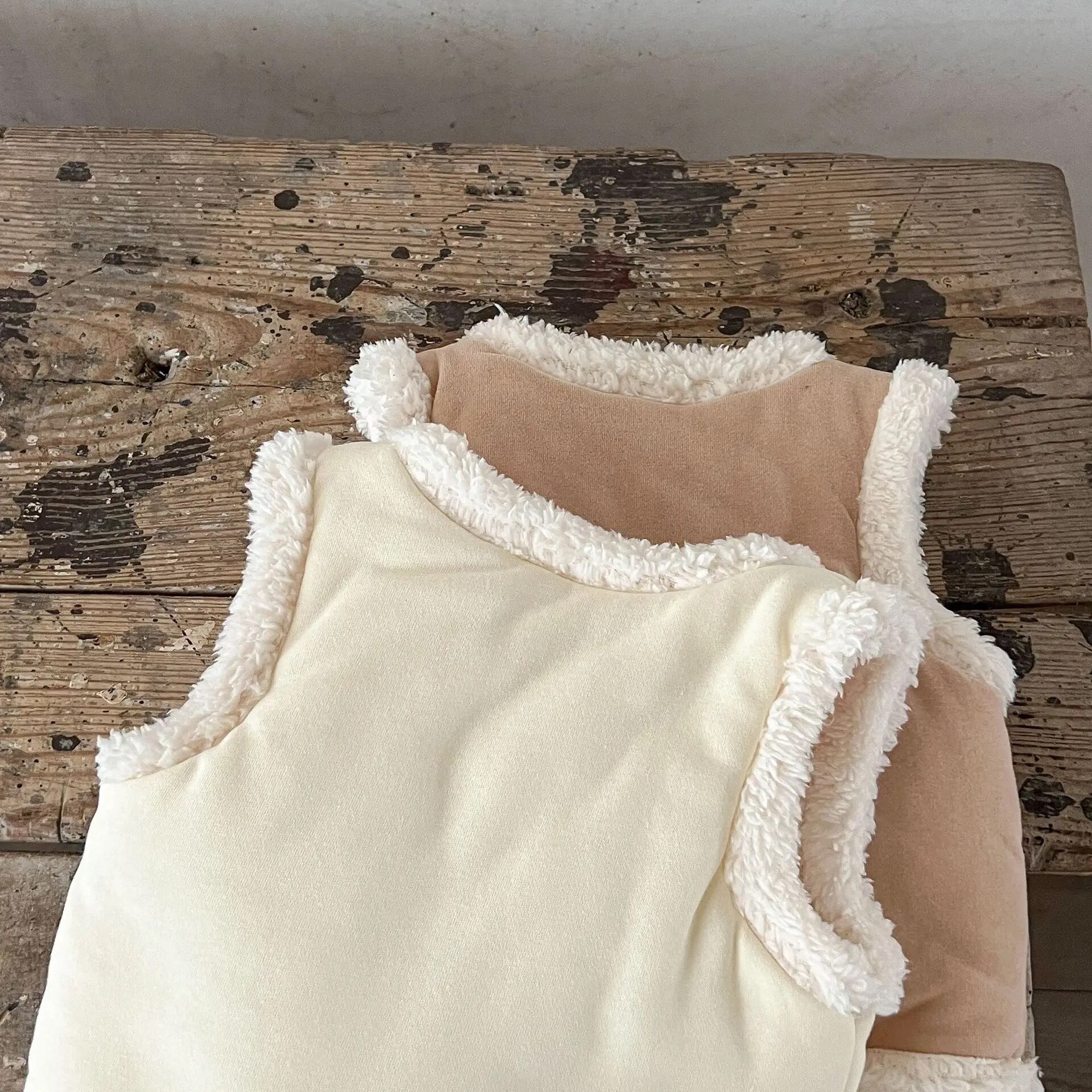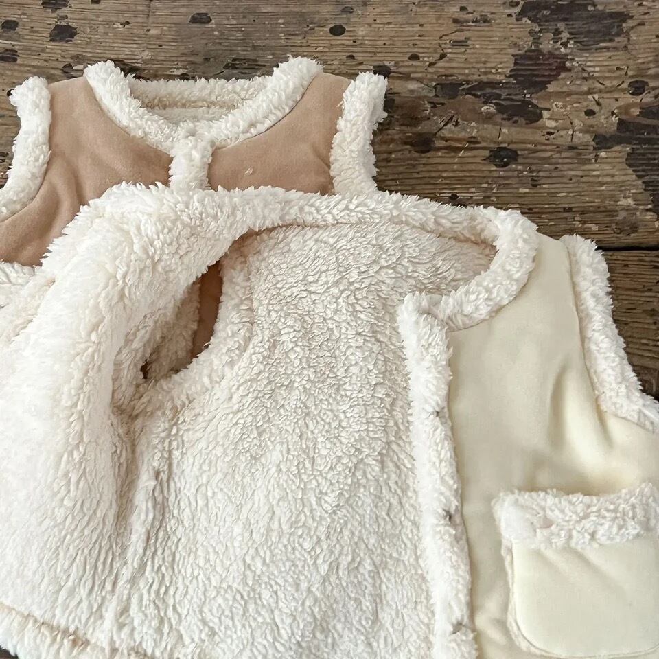 ジュニア アウター ベビー 男の子 子供用 可愛い 羽織り もこもこ 裏フリース ボアベスト 女の子 ボタン ベスト 上着 女の子 トップス 厚手 キッズ ノースリーブ 袖なし ポケット ノーカラー 暖かい 子供服 冬秋