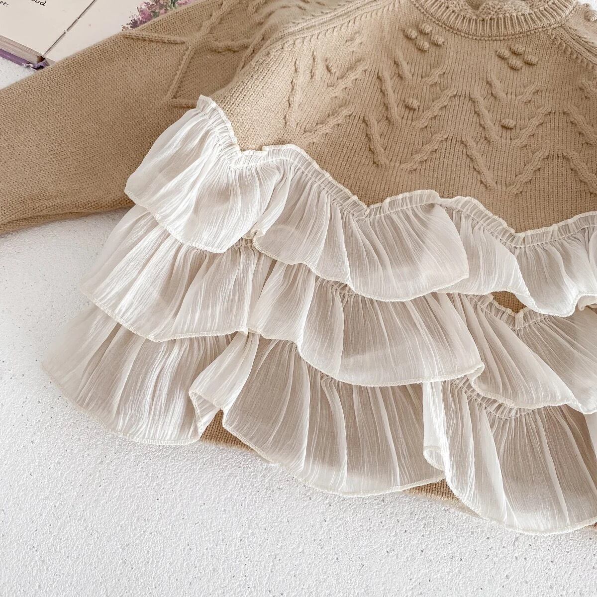 セーター 子供 女の子 ニット キッズ レース オーバーニット 春 秋 冬 トップス 子供服 ニットセーター 長袖 お姫様 洋服 オシャレ プリンセス 結婚式 発表会 七五三 入園式 入学式 誕生日 プレゼント ギフト アウター 冬服 韓国 秋冬服 丸い襟 プルオーバー 上着 90 100 110 120 130