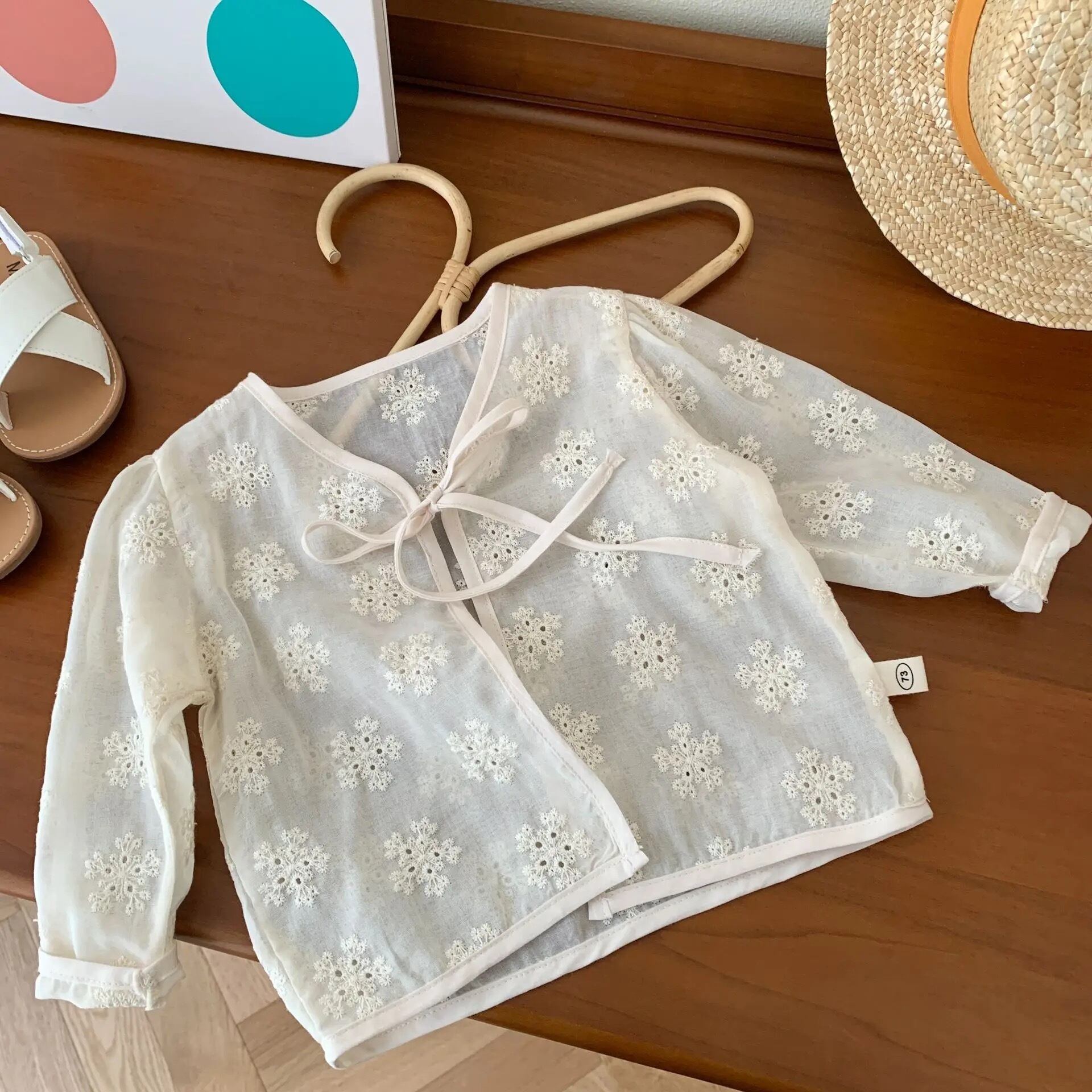 キッズ 薄手 秋 夏 カーディガン サマー カーディガン 透かし編み サマーカーディガン 白 子供服 女の子 夏服 女の UV対策 羽織り 子ども服