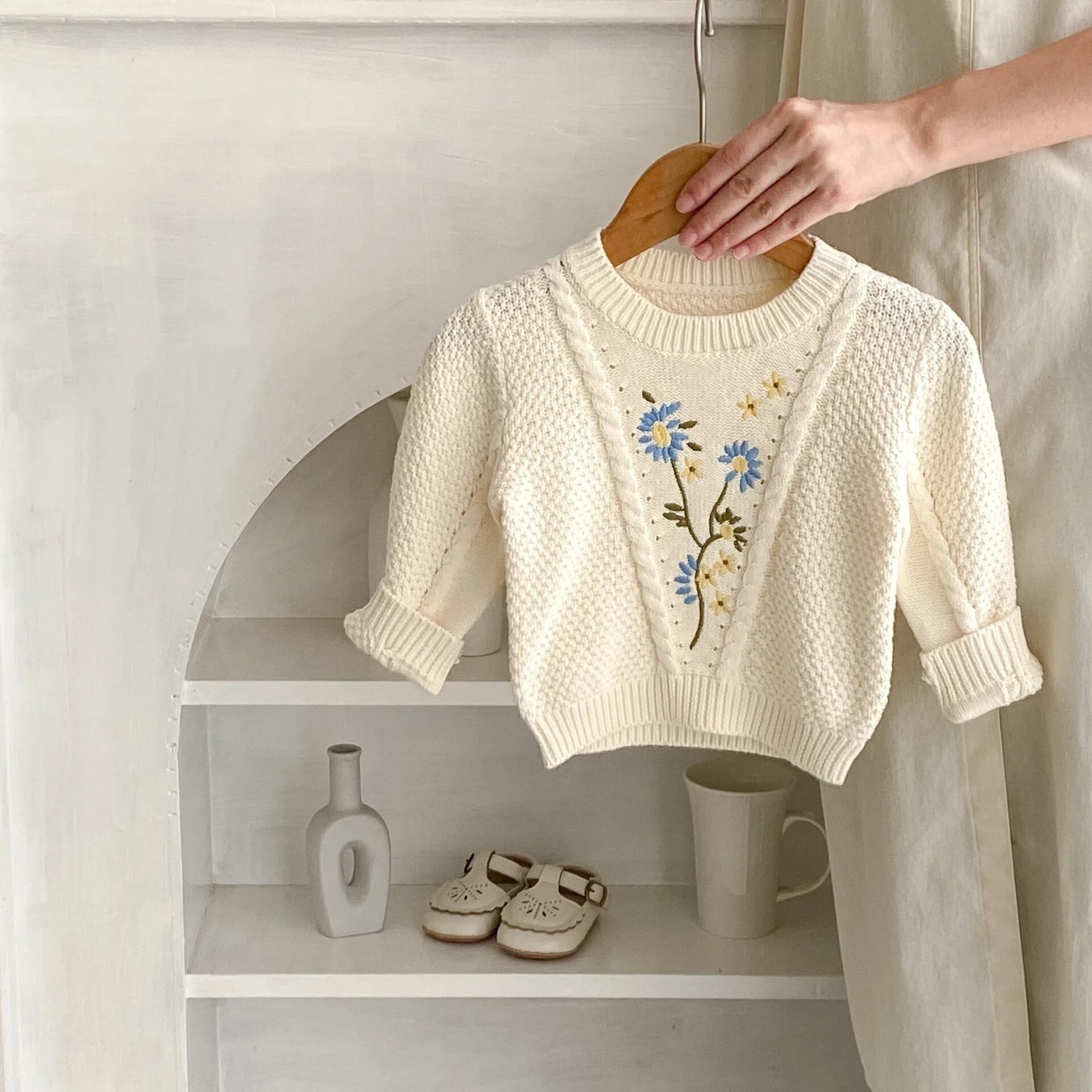 キッズ ニット 秋 春カーディガン カジュアルカーディガン 花柄 刺繍 白 子供服 女の子 秋服女の 子ども服