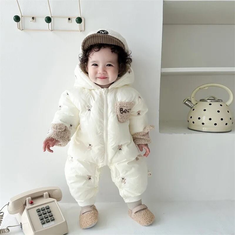 ロンパース ベビー 服 赤ちゃん 幼児 かわいい 小さい クマ フード秋冬 肥厚 ジャンプ スーツ