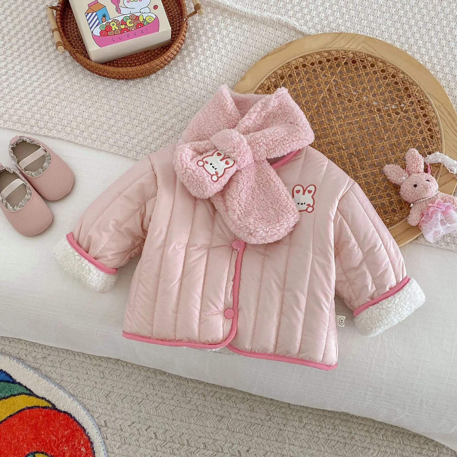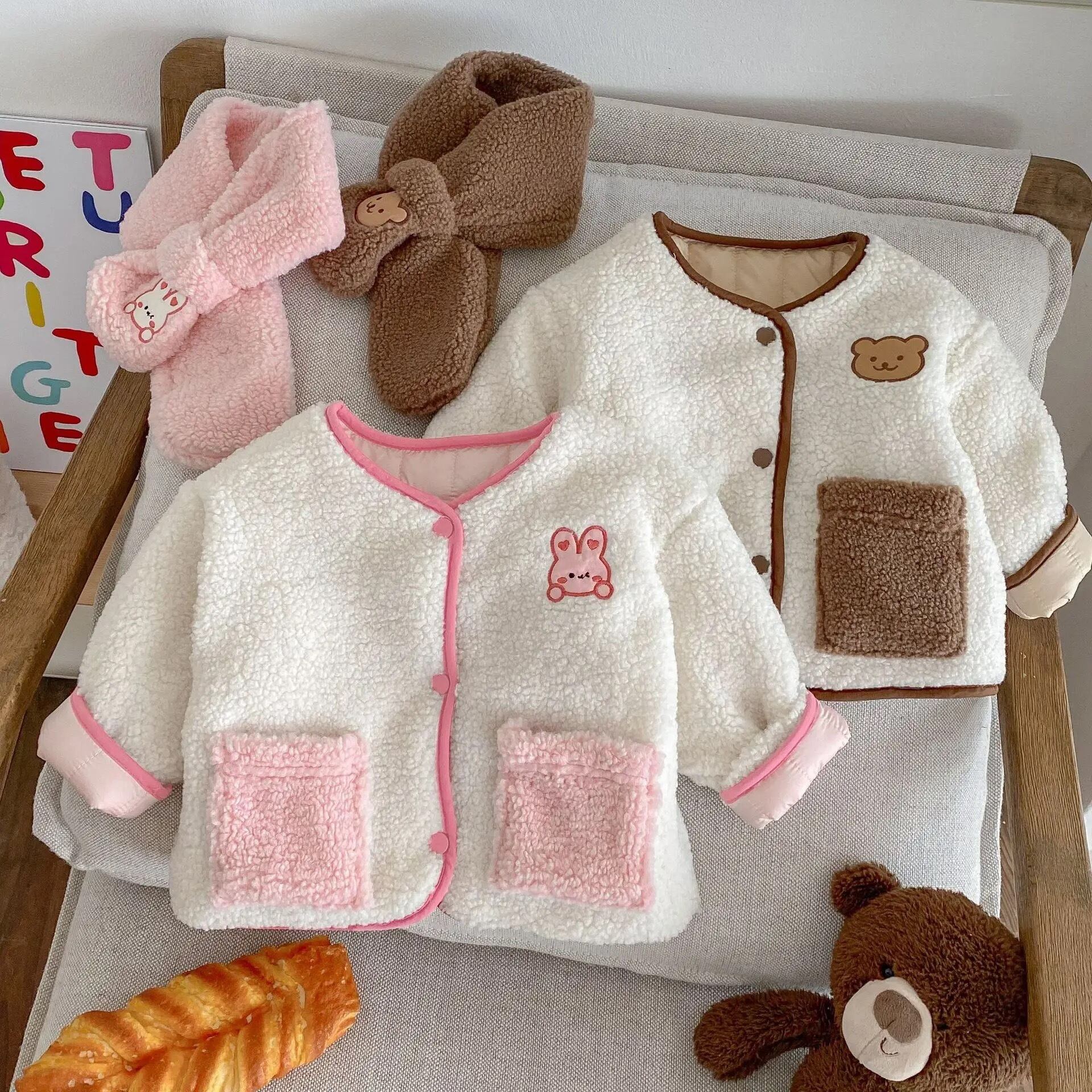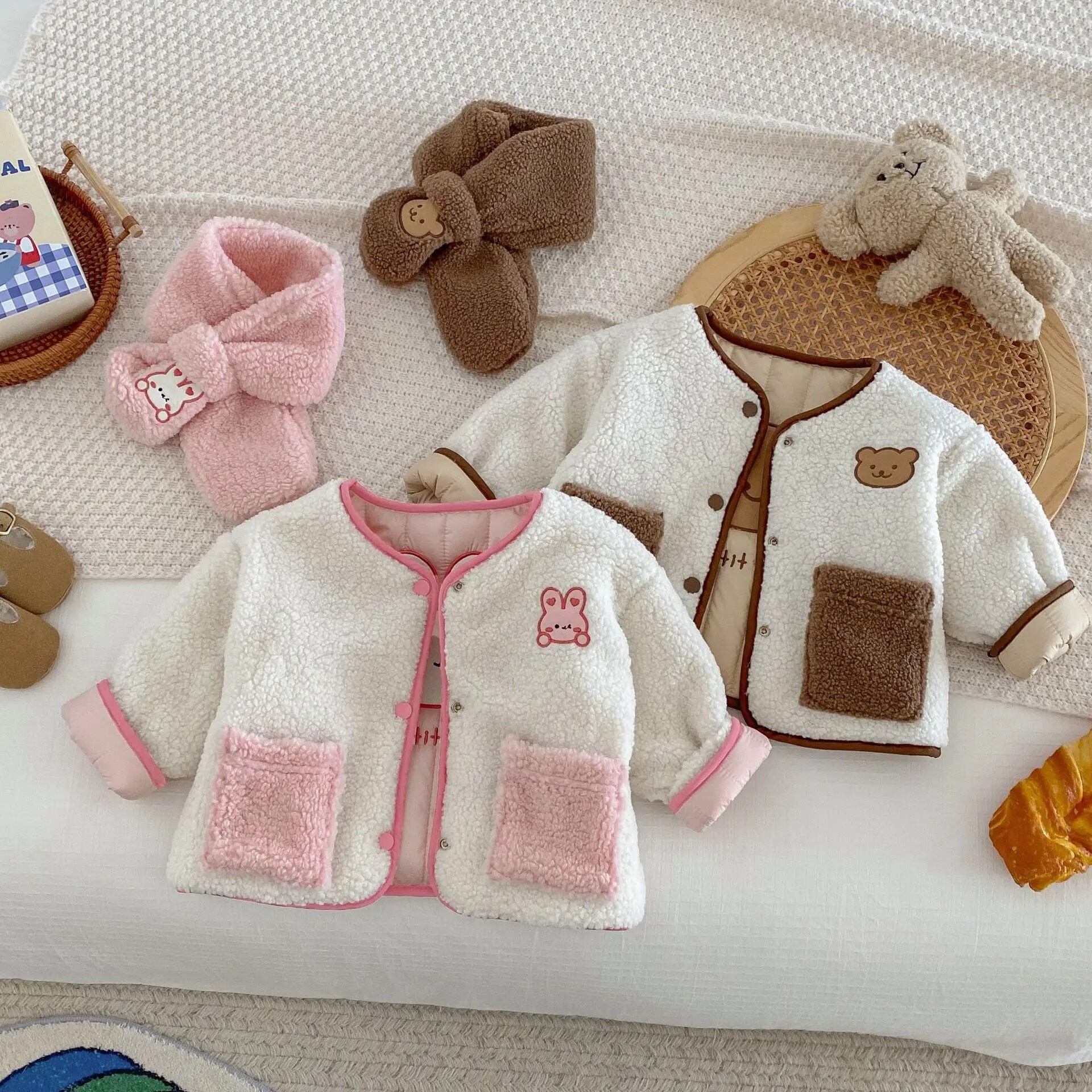 子供服 女の子 アニマル くま うさぎ ボタン 長袖 アウター 裏地 あたたかい /ベビー服 かわいい コート 日常 カジュアル 保育園 出産祝い 新生児 赤ちゃん 幼児 プレゼント 贈り物 春 秋 冬 7080 90 100 110 120 130cm