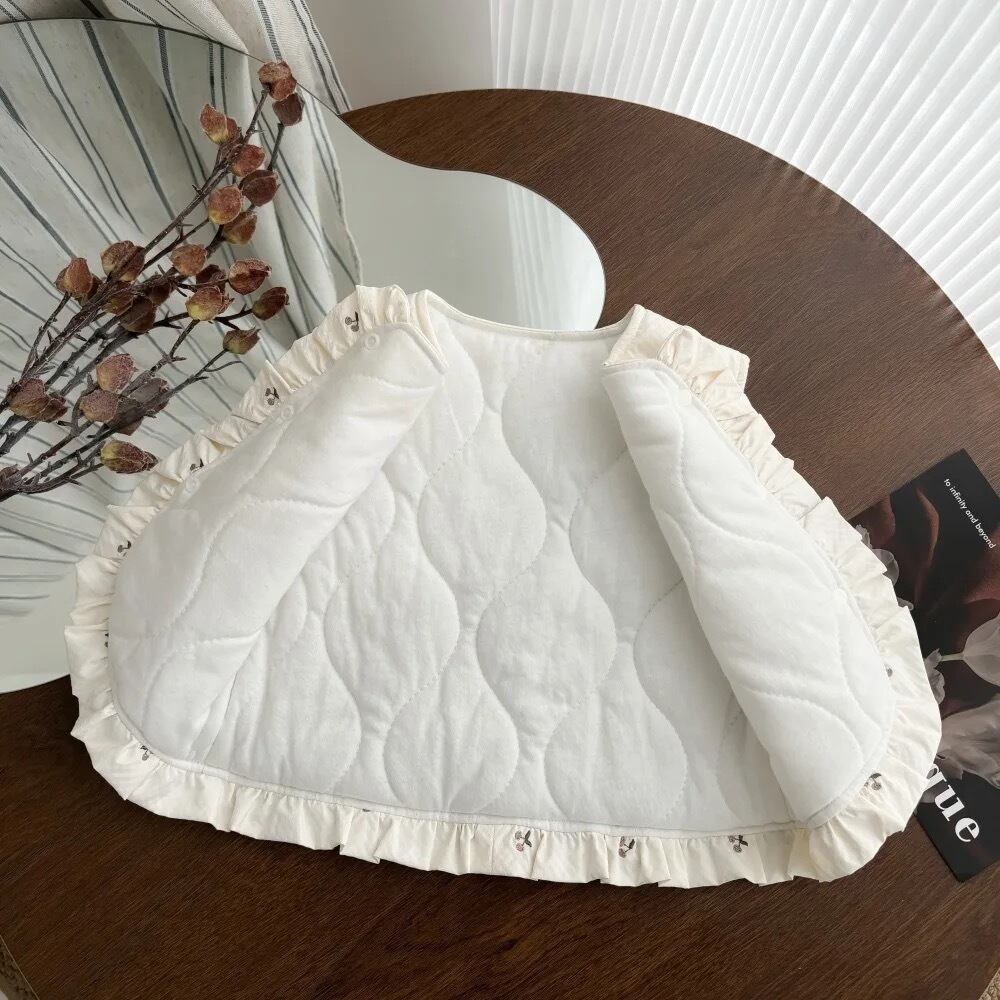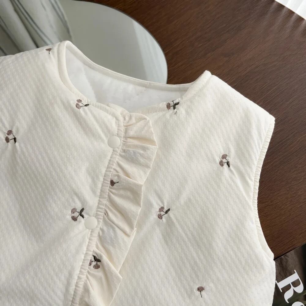 ボア ベビー キッズ 部屋着 ベスト 秋 冬 70 80 90 100 さくらんぼ 白 メルヘン