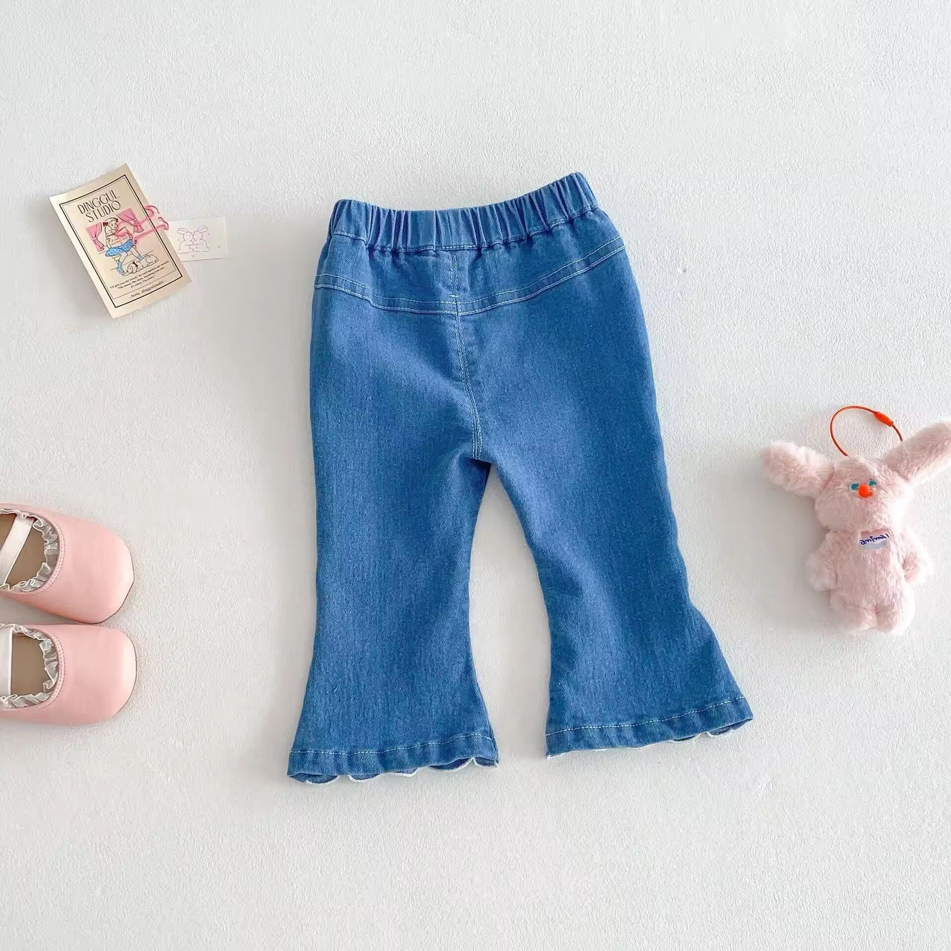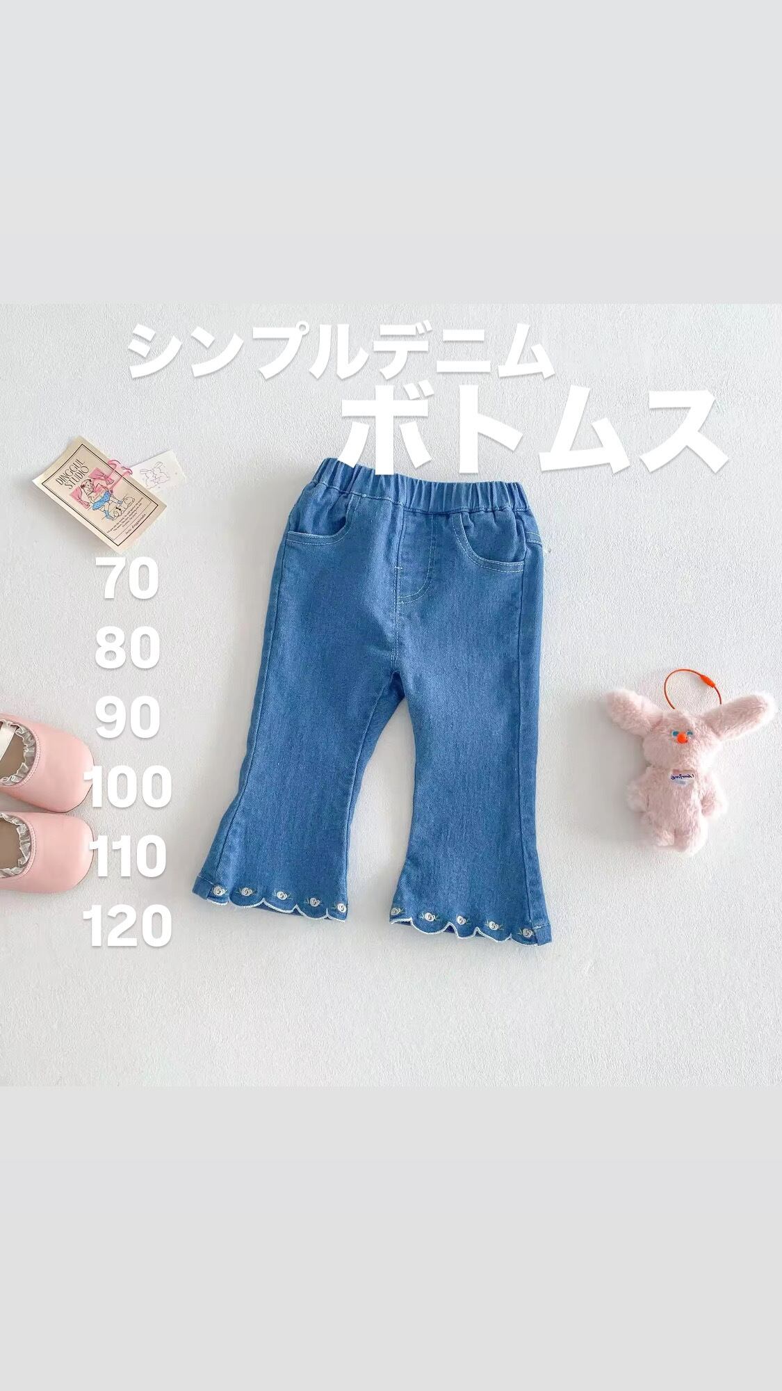 キッズ デニム パンツ (70.~120cm)ズボン ボトムス 裾 女の子 ジュニア 子供 子ども 可愛い かわいい 韓国 こども服 カジュアル シンプル おしゃれ 春夏秋 秋服 春服 夏服
